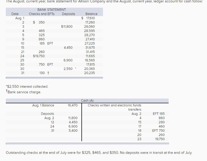 Solved Use The Following Bank Statement And T Account To Chegg Com